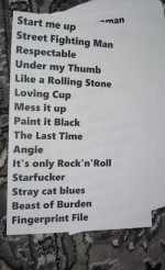 Es wäre nicht fair, einzelne Bandmitglieder herauszupicken, um deren musikalische Fähigkeiten hervorzuheben. Die Band spielte wie aus einem Guss und steigerte sich immer weiter, je länger das Konzert dauerte. Leadsänger Mirko Zander, der den Part von Mick Jagger innehatte, holte das Letzte aus sich heraus – schweißtriefend und stimmgewaltig sang er, auch teilweise fast schreiend, ins Mikrofon. Wunderbar ergänzt, auch im Duett mit Sängerin Claudia Wittner, begeisterte die Band speziell bei den Stones-Klassikern „Sympathy for the Devil“, „Gimme Shelter“ und „Midnight Rambler“. Der Song „Midnight Rambler“ kann als Highlight des Konzerts bewertet werden, da in der zehnminütigen Performance alle bis an ihre Grenzen gingen. Es hört sich übertrieben an, aber die Band agierte wie in Trance – wahrscheinlich berauscht vom eigenen Sound. Da die Stones eigentlich aus dem Genre Blues heraus entstanden sind, entzog sich „Fingerprint File“ auch diesem Musikstil nicht und interpretierte den Blues auf ihre eigene Art. Die Setlist des Abends ist auf den anhängenden Fotos zu sehen.