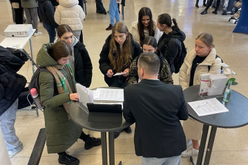 Am zweiten Messetag standen die Schülerinnen und Schüler im Mittelpunkt. Sie konnten gezielt Fragen stellen, Informationsmaterial sammeln und erste Kontakte zu potenziellen Ausbildungsbetrieben knüpfen. Die Hausmesse war fest in den Unterricht zur Berufsorientierung eingebunden und wurde im Vorfeld entsprechend vorbereitet.