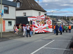 Der Zug startete fast pünktlich um 14:11 Uhr an der Kreuzung Alte Poststraße/ Knappenstraße in Katzwinkel. Gemächlich zogen die sechzehn teilnehmenden Gruppen langsam bergab durch den Ort. Entlang der Strecke wartete bereits die feiernde Menge, darunter viele Familien mit Kindern, auf ihre Kamelle. Immer wieder flogen Süßigkeiten in die Menge, begleitet von Musik, Applaus und fröhlichen Zurufen. Insgesamt machten rund 1000 Karnevals-Fans am Sonntag die Straßen der kleinen Gemeinde unsicher und trugen zu einer lebendigen Atmosphäre bei. Von hoch oben wurden Aussteller und Zuschauer schließlich durch die Karnevalsgesellschaft Katzwinkel begrüßt, was den Umzug zusätzlich auflockerte.