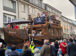 Gegen 14.11 Uhr setzte sich der Festzug auf der Koblenzer Straße in Bewegung, zweieinhalb Stunden später erreichte der letzte Wagen den Zielpunkt am Bahnhof. In der Zwischenzeit gab es für die Zuschauer richtig was zu sehen – und ordentlich Kamelle. Wieder einmal hatten sich die über 1000 Zugteilnehmer, aufgeteilt in 54 Gruppen, einiges einfallen lassen, um die Gäste mit ihrem jecken Hobby zu begeistern. Ein Highlight war sicherlich der hüpfende Wagen mit Renn-Motiv der Dorfjugend Birkener Höhe. Aber auch das Piratenschiff der SG Merschbisch und der einsame Brezelverkäufer werden lange im Gedächtnis bleiben.