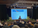 Anschließend sollten Udo Otterbach und Christoph Gehrke von der befreundeten BI Wildenburger Land, die das gleiche Ziel verfolgt, jeweils ein kurzes Grußwort mit einem kleinen Vortrag halten, wobei Otterbach aber so überzog, dass Gehrke nicht mehr recht etwas Ungesagtes zu sagen wusste. Otterbach fokussierte sich in seinem Vortrag vor allem auf die ästhetischen Defizite der Windräder, zeigte viele Vorher/Nachher-Bilder und wies das Publikum wiederholt an, sich doch selbst vor Ort ein Bild von der "Verschandelung" zu machen. Auch auf die Folgen für die Wirtschaft, die Immobilienpreise und die Risiken für Tiere machte er aufmerksam.
