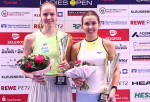 Die in der Doppel-Setzliste ganz oben Geführten waren auch auf dem Court die Nummer eins. Justina Mikulskyte (Litauen) und Martyna Kubka (Polen) entschieden das Endspiel gegen das deutsche Duo Nastasja Schunk und Tessa Brockmann mit 6:1, 6:2 für sich. „Wir wollten das Spiel natürlich knapper gestalten, sind aber trotzdem mit unserer Leistung zufrieden“, sagte Brockmann bei der Siegerehrung. Zum ersten Mal bildeten sie und die gebürtige Mainzerin Schunk bei einem Turnier ein Team. „Es hat Spaß gemacht“, resümierte Brockmann. Schunk ist in Altenkirchen im Gegensatz zu Brockmann ein bekanntes Gesicht. Seit dem Jahr 2020 ist die ehemalige Wimbledon-Finalistin der Juniorinnen-Konkurrenz immer dabei auf der Glockenspitze. „Altenkirchen hat in jedem Jahr einen festen Platz im Kalender“, verdeutlichte die 22-Jährige, dass sie sich beim Turnier im Westerwald pudelwohl fühlt. Im insgesamt einseitigen Endspiel machte die litauisch/polnische Kombination – auch sie war erstmals als Doppel Seite an Seite unterwegs – die meisten der Schlüsselpunkte. Vielleicht fehlte es der jungen deutschen Paarung in den wichtigen Momenten auch noch etwas an der Erfahrung. Zwei Breaks von Mikulskyte und Kubka führten im ersten Durchgang zum deutlichen 6:1. Im zweiten Satz hatten die von Beltz betreuten DTB-Talente ihre Chancen, nutzten sie aber nicht – so beim Breakball zum möglichen 2:0 und beim Spielverlust zum 2:4-Rückstand nach 40:0-Führung. (vh)