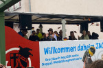 Vor und in der Halle gab es Gastrostände, an denen Freibier ausgeschenkt wurde. Leider schien man bei der Organisation im Voraus selbst nicht mit einem solchen Andrang gerechnet zu haben, weshalb der Einlass in die Halle katastrophal verlief. Die Halle hatte nicht im Ansatz die Kapazitäten, das gesamte Feiervolk aufzunehmen, sodass es sich vor den Eingängen mächtig staute. Dabei war die zugrundeliegende Angst, etwas zu verpassen, gänzlich unbegründet: Über Lautsprecher wurde das Bühnenprogramm auch nach außen übertragen.