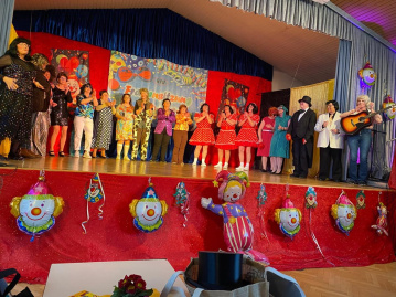 Als ersten Programmpunkt präsentierten die Frauen eine Oldie-Hitparade, bei der die Mitwirkenden einen Hit aus ihrem jeweiligen Geburtsjahr vorstellten. Das Repertoire reichte von "Tanze mit mir in den Morgen" (1950) bis "Der Nippel" (1980) und animierte zum Mitsingen! Es folgte eine bunte Reihe von Sketchen, Einzelvorträgen und Tänzen, wie zum Beispiel "Ballerina vor dem Spiegel". Sehr amüsant zu sehen, wie sich das Spiegelbild verselbständigte!