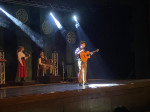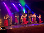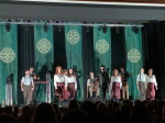 Erfolgreicher verlief die Performance auf der Bühne: Pünktlich um 20 Uhr wurde der Raum verdunkelt und die Band betrat die Bühne. Ausgestattet mit Fiddle, Keyboard, Gitarre und Schifferklavier gelang es den Musikern schnell, sich Gehör zu verschaffen. Bald folgte auch das siebenköpfige-Tanzensemble. In klassisch irischer Kostümierung, die nicht selten gewechselt wurde, führten die "Celtic Rhythms" eine Show auf. Die emotionale Färbung wanderte dabei mehrfach von fröhlich-vergnügt über festlich-ernst bis zu melancholisch-traurig und wieder zurück. Highlights waren einmal "The Rocky Road to Dublin", das bewegend vorgetragene "Siúil a Rún" und der Besentanz.