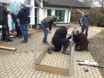 Fürthen. Viele helfende Hände sorgten dafür, dass die Fläche für die Hochbeete professionell vorbereitet wurde. Mithilfe eines Baggers wurde der Untergrund bearbeitet und mit Frostschutzmaterial stabilisiert. Der Bagger wurde von einem Kita-Papa zur Verfügung gestellt und fachmännisch bedient. Parallel dazu machte sich eine weitere Gruppe daran, zwei Hochbeet-Bausätze aufzubauen. Nach erfolgreicher Vorbereitung des Platzes konnten die fertigen Elemente gemeinsam aufgestellt werden. Auch die Kinder halfen beim Ausgraben und Umpflanzen des Johannisbeerstrauches, der für die Hochbeete seinen Platz verlassen musste.