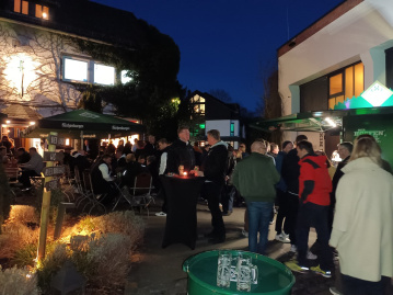 Am Ende des Rundganges stand dann die Party mit einem leckeren, abwechslungsreichen Buffet und der vollen Getränkeauswahl. Neben Currywurst und Kartoffelsuppe gab es auch kleine Ofenkartoffeln mit Quark, Kartoffelsalat mit Frikadellen und Brezeln, sowie Vollkornbrot und Brötchen. Im gesamten Innenhof feierten die Gäste dann bei Live-Musik in lockerer Atmosphäre.