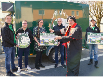 Oberwambach. Der Kühlwagen-Wanderweg "Rund um Oberwambach" ist offiziell als Pilgerstätte eingestuft worden. Im Rahmen einer kleinen Zeremonie vor Ort überreichte Pater Micha persönlich das entsprechende Pilgerschild an Vertreter der Organisatoren und der Gemeinde. In seiner Ansprache betonte er, dass Pilgern heute vielfach neu interpretiert werde. "Es geht um bewusstes Unterwegssein, um Gemeinschaft und um Orte, an denen Menschen zusammenkommen", sagte Pater Micha. Der "KühlwagenWanderWeg" erfülle diese Kriterien in besonderer Weise.