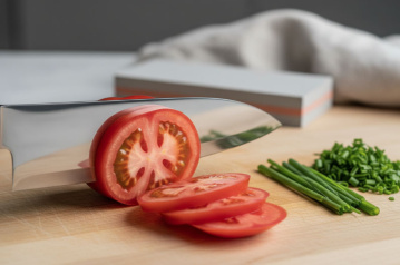 Der auffälligste Unterschied liegt in der Klingengeometrie. Europäische Messer werden in der Regel beidseitig mit einem Winkel von etwa 20 Grad pro Seite geschliffen. Japanische Modelle hingegen arbeiten mit einem deutlich flacheren Winkel von 12 bis 15 Grad - manche sogar mit einem einseitigen Schliff. Dadurch entsteht eine rasiermesserscharfe Schneide, die Lebensmittel eher trennt als quetscht. Das Ergebnis zeigt sich besonders beim Schneiden von Fisch, Gemüse oder Kräutern: Die Zellstruktur bleibt weitgehend intakt, Aromen und Säfte gehen nicht verloren. Wer sein Messerset Küche um ein japanisches Modell erweitert, bemerkt den Unterschied bereits beim ersten Schnitt durch eine reife Tomate!