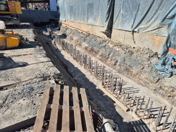 Altenkirchen. Zunächst waren es große Baumaschinen, die die Szene rund um die Jugendkunstschule in Altenkirchen bestimmten. Dann lebte das Areal still vor sich hin, ehe nunmehr wieder Bagger das Geschehen dominieren. Hatte die Deutsche Bahn die Brücke über den Quengelbach im Verlauf der Strecke zwischen Altenkirchen und Westerburg in unmittelbarer Nähe zur „Kreuzung“ mit der L 267, der Koblenzer Straße, erneuern lassen, folgte auf diese Arbeiten die Hiobsbotschaft: Die rechte Stützmauer (in Fließrichtung des kleinen Baches), an die die alte Sturm-Halle als Heimstatt der Kunstschaffenden unmittelbar grenzt, präsentierte sich nicht mehr von ihrer stabilsten Seite. Sie war vom Einsturz bedroht, so dass zum 1. Mai 2024 ein Betretungsverbot für das Refugium der großen und kleinen Künstler erlassen werden musste, das auch schriftlich vorliegt. Die Sanierung der Querung wird auch als Ursache vermutet, die das Bruchsteinsammelsurium in der Vertikalen aus dem Lot gerieten ließ. Nach Monaten der Planung ist wieder Leben in den Bereich rund um das Atelier gekommen. Der alten Einfassung wurde der Garaus gemacht, der Quengelbach sucht in diesem Abschnitt vorübergehend durch drei größere Rohre seinen Weg in Richtung der wenige Hundert Meter entfernten Mündung in die Wied. Über ihnen bilden dicke Holzbohlen die Basis, auf der die Männer der Firma Peter Gross Bau das Projekt der neuen seitlichen Führung verwirklichen können. Inzwischen sind die Grundlagen gelegt, um das Bollwerk zu vervollständigen. Die Gründung erfolgte mit bis zu knapp neuen Metern tiefen Bohrungen, die anschließend mit Beton und Armierungseisen verfüllt wurden. Auf diese Ansätze wird die neue Mauer mit einer Höhe von rund einem Meter in herkömmlicher Weise per Schalung und Kies-Zement-Gemisch als Ausfüllmasse gesetzt, ehe ein Geländer als „Krönung“ montiert wird. Der Abschluss des Bächleins auf der anderen Seite, ebenfalls von den Holzbohlen überdeckt, bleibt unangetastet. Zur Sicherheit wurden in der Jugendkunstschule Sensoren angebracht, die Alarm geben, wenn sich die Statik des Gebäudes als Folge der Bauarbeiten verändert.