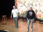 In ihren Rollenspielen überzeugten sie mit verschiedenen Dialekten, zum Beispiel als „Peggy und Sandy“, die sächselnd die Situation der Ostdeutschen beleuchteten. Peggy zu Sandy: „Sandy, ich habe einen neuen Freund.“ Sandy: „Hat er auch einen Beruf?“ Peggy: „Ja, er ist Frührentner.“ Die Rolle des „Andi“ schien Lars Niedereichholz wie auf den Leib geschnitten zu sein. Wenig charmant beschrieb er seine Partnerin, die wohl über eine beachtliche Leibesfülle verfügt, etwa 1,50 Meter hoch und 1,20 Meter breit. Wenn sie in die Badewanne gehen würde, müsste nur wenig Wasser eingelassen werden. Ihre Speckröllchen auf dem Rücken könnte er wunderbar als Handyhalter nutzen. Aber er liebt sie trotzdem, oder gerade deswegen? Andi regte sich auch maßlos über moderne Parkhäuser auf, denn im Erdgeschoss würden nur Frauenparkplätze vorhanden sein, auf der ersten Ebene nur für Behinderte, auf der dritten Ebene nur Mutter-Kind-Parkplätze, auf der vierten Ebene nur Ladestationen für die „schwulen“ E-Autos. Endlich oben angekommen, hätte er ein „Schleudertrauma“.