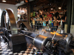 Getreu dem Motto "Alles bewegt sich" werden um 10 Uhr die Maschinen aus dem Winterschlaf geweckt; der Schmied schwingt den Hammer am Schmiedefeuer und im Obergeschoss herrscht bunter Trubel auf der historischen Modellkirmes.