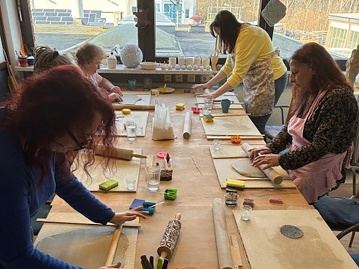 Zum Keramik-Workshop traf sich die Frauengruppe der Diakonie Soziale Dienste. Ausprobieren, anpacken, kreativ sein: In zweieinhalb Stunden entstanden viele individuelle Kunstwerke.