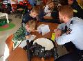 Durch mitgebrachte, typische Arbeitsmaterialien und die passende Arbeitskleidung erhielten die Kinder einen sehr umfangreichen Einblick in die breitgefächerte Berufswelt der Erwachsenen. Ob Polizist, Feuerwehrmann oder Rettungsassistent, Frisörin, Malerin oder Krankenpfleger; Verkäuferin, Erzieherin und Lokomotivführer, Hebamme und nicht zuletzt eine Lehrerin wurden interessiert von den Schülerinnen und Schülern befragt. In besonderer Erinnerung werden die mitgebrachten Arbeitsutensilien bleiben, die die Kinder selbst einmal ausprobieren durften.