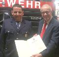 Das silberne Feuerwehrehrenzeichen für 25-jährige aktive Tätigkeit erhielt Brandmeister Uwe Melles. Melles trat 1991 in den Löschzug Oberlahr ein und absolvierte mehrere Lehrgänge in seiner Feuerwehrlaufbahn. 2008 legte er erfolgreich die Prüfung zum Gruppenführer an der Landesfeuerwehr- und Katastrophenschutzschule in Koblenz ab. Die Ernennung zum Brandmeister erfolgte dann im Jahr 2009. Der Erste Beigeordnete der Verbandsgemeinde Flammersfeld, Rolf Schmidt-Markoski dankte Melles für seinen ehrenamtlichen Einsatz und überreichte ihm die Urkunde des Innenministers sowie das silberne Feuerwehrehrenzeichen.