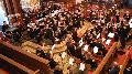 Komponist Jan van der Roost wurde bei einem Besuch der gotischen Kathedrale von Canterbury zu dem herrlich getragenen Stück „Canterbury Chorale“ inspiriert. Die Knappen intonierten die ruhigen Solo- und Tutti-Passagen sowie die weiten Melodielinien des Werks in einer gekonnten Art und Weise. Bei „Eventide Fall“ und dem bekannten Stück „Highland Cathedral“ kamen weitere schöne Titel zur Freude des Publikum zu Gehör. In nur wenigen Wochen hatten die Knappen dieses schwierige Konzert mit beiden Orchestern und den Dirigenten Michael Weib und Stefan Hees einstudiert. Das Konzert unterstrich, auf welch solidem Fundament an musikalischer Ausbildung das im Schnitt noch sehr junge Orchester gründet.
