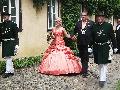 Am Sonntagnachmittag, 25. Juni, zog das Schönsteiner Königspaar mit seinem Hofstaat durch das Schlossdorf. Sechs Paare begleiteten Schützenkönig Norbert II. Lichtenthäler und seine Königin Simone auf ihrem Weg bis zum Festzelt auf dem Schützenplatz.