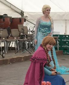 Prächtig weitergefeiert wurde am Sonntag beim großen Frühschoppen, der um 10.30 Uhr mit dem traditionellem Fassanstich durch den Musikverein Dermbach eröffnet wurde. Im Anschluss daran besuchten die Schneekönigin Elsa und ihre Schwester Anna, bekannt aus dem Disney Film „Die Eiskönigin“, das Festzelt und sorgten besonders bei den kleinen Gästen für große Begeisterung.