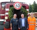 Steinebach-Bindweide. Einem wahren Eisenbahnfreund scheint kein Weg zu weit. Aus dem nahen Landkreis Siegen-Wittgenstein, aus Bonn, Frankfurt am Main, ja sogar aus Warendorf im Münsterland waren Eisenbahn-Fans angereist um die letzte Diesellock mit der Bezeichnung V 26, die dritte ihrer Art der Westerwaldbahn im Betriebshof Bindweide auf ihrer letzten Fahrt zu fotografieren. Für diese letzte Fahrt war die Lok eigens mit einem großen grünen Kranz geschmückt worden, ein Verkehrsschild mit einer großen 60 und der Aufschrift „Nach über 60 Jahren auf zur letzten Fahrt“ zierte das Gefährt im Front- und Heckbereich.