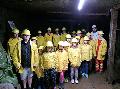 Am Samstag besuchte die Gruppe das Besucherbergwerk Grube Bindweide in Steinebach. Mit Helm und Regenmantel ausgestattet, beförderte die Grubenbahn die Reisegruppe fast einen Kilometer in den Berg hinein. Der Bergwerksführer zeigte unter anderem bei welch finsterem Licht die Bergleute arbeiten mussten. Außerdem betätigte er einen Bohrhammer und einen Kipplader. Das war sehr laut, so dass sich alle die Ohren zuhalten mussten. Nach etwa 1,5 Stunden war die Führung zu Ende und die jungen Bergleute wurden wieder von der Grubenbahn abgeholt und nach draußen gefahren.