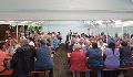 Zum Frühschoppen am Sonntag zeigte sich die Sonne von ihrer besten Seite und sorgte im Eichenwald sehr schnell für angenehme Wärme. Zur großen Freude der Organisatoren fanden sich in kurzer Zeit viele Gäste ein, die vom reichhaltigen Angebot Gebrauch machten und auch gerne länger auf dem Waldfest verblieben. So entstand im vollbesetzten Festzelt eine harmonische Atmosphäre. Der Service im Bierpavillon, in der schönen Holzhütte, und auch am Grill für die Spezialitäten auf dem Speiseplan, die Frauen der Sänger im Kuchenzelt und am Salatbüfett, hatten alle Hände voll zu tun.