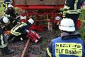 Zeitnah konnten alle Personen, sowohl aus den Hallen, als auch aus der misslichen Lage unter dem Anhänger befreit werden. Durch dieses Szenario erhielten die zahlreichen Zuschauer nicht nur einen Einblick in die Arbeit der Einsatzkräfte unter Atemschutz, sondern auch wie aufwendig das Ausrüsten dieser Kräfte ist und mit wie viel Material diese umgehen können müssen. Zudem konnten die Löschzüge Daaden und Weitefeld hier ihre Zusammenarbeit in der technischen Hilfe weiter ausbauen. Beide Einheiten besitzen besonderes Material, um in solchen Einsätzen arbeiten zu können.