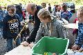 Im Anschluss an den Film besprachen die beiden Medienpädagogen die Handlung mit den kleinen Zuschauern. Dann wurden diese von Ortsbürgermeister Michael Wäschenbach, dem Initiator der Aktion, begrüßt und nach draußen geführt. Hier war schon alles für den Bau eines großen Insektenhotels aus Europaletten vorbereitet worden. Hermann Josef Daube, Marita Schwenk, Lisa Schmidt und Carina Kötting waren neben einigen Jugendlichen aus dem Ort als ehrenamtliche Helfer dazu gekommen und gestalteten aus unterschiedlichen Materialien die verschiedenen Fächer des Insektenheims. Dabei wurden sie tatkräftig von den Kindern unterstützt, die fleißig sägten, bohrten, spachtelten, klebten und auffüllten, was das Zeug hielt.