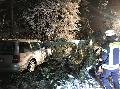 Weitaus umfangreicher gestaltete sich der zweite Alarm kurz vor 22 Uhr. Hier war am Ortsausgang in Fahrtrichtung „Schwedengaraben“ ein von der Schneelast zu Fall gebrachter Baum auf ein fahrendes Auto gestürzt. Glück im Unglück hatte dabei der Fahrer, der sein Fahrzeug unverletzt verlassen konnte.