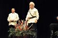 Peter Orloff, dem dieses Konzert wichtig war, um den guten Zweck zu unterstützen, spendete 300 Euro an die Kinderkrebshilfe und bat die Besucher es ihm gleich zu tun. „Jeder nach seinen Möglichkeiten, dann kommt eine Menge zusammen“, sagte Orloff. Jutta Fischer, Vorsitzende des Vereins, bedankte sich bei allen Mitwirkenden und erzählte eine bewegende Begebenheit. „Uns erreichte vor einigen Tagen der Anruf einer Familie, deren Tochter an Leukämie erkrankt war. Nach einer Therapie galt sie als krebsfrei. Leider mussten wir nun erfahren, dass sie einen Rückfall erlitten hat. Wir haben die Familie sofort wieder in die Betreuung aufgenommen.“ Bevor die Schwarzmeer Kosaken die Bühne verließen, bat Ulrich Fischer sie „Ich bete an die Macht der Liebe“ zu intonieren. Diesem Wunsch kamen die Sänger gerne nach. Zum Abschluss eines bewegenden Konzertes, wie es viele der Zuhörer beschrieben, sangen die beiden Chöre gemeinsam mit dem Publikum „Stille Nacht“. Stehende Ovationen verabschiedeten dann die Sänger. (kkö)