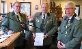 Für besondere Verdienste im Schießsport wurde Harald Seidel von dem stellvertretenden Bezirksschießmeister Olaf Schätzchen mit dem bronzenen Abzeichen des Bundes der deutschen historischen Schützenbruderschaften für den Schießsport ausgezeichnet.