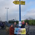 Einen Wegweiser mit der Aufschrift „Weddellmeer Antarktis: 14.185 Kilometer" hat die Greenpeace-Gruppe Westerwald am 28. Januar am Cinexx Kino in Hachenburg aufgestellt. Mit der Aktion und einem Informationsstand machen die Ehrenamtlichen auf eine historische Chance für den Meeresschutz aufmerksam: Im Herbst entscheidet die Antarktis-Kommission CCAMLR (Commission for the Conservation of Antarctic Marine Living Resources) über die Schaffung des weltgrößten Meeresschutzgebiets im Weddellmeer.