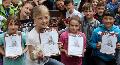 Paula Welp aus der Grundschule Brachbach gewann mit ihrer Geschichte „Der unbekannte Stein“. Darin schildert die Schülerin, wie die Kinder Lara und Tim am Ostseestrand einen ihnen unbekannten Stein ausbuddeln. Mit ihren Eltern gehen die Kinder in das nahe gelegene Steinmuseum und erfahren dort, dass es sich um einen Bernstein handelt. Den dürfen die Kinder zu ihrer großen Freude dann auch behalten. Paulas Geschichte wird für die Besucher des Museums ausgestellt und ein Jahr lang in der Vitrine nachzulesen sein. Auch die neun anderen besonders guten Geschichten können die künftigen Museumsbesucher an der Pinnwand entdecken, darunter die Geschichten von Debora Schmidt („Die hilfreichen Steine“), Charlotta Grindel („Der rätselhafte Diebstahl“) und Tom Kern („Vom Fisch zum Steine – eine wundersame Verwandlung“), die ebenfalls an der Grundschule Brachbach lernen und für ihre Schreibarbeit mit einer Urkunde ausgezeichnet wurden.