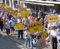 Viele waren gekommen unter dem Motto „Auf die Straße – für bessere Straßen!“. Die Veranstalter sprachen von über 2.000 Teilnehmern am Demonstrationszug von der Industriestraße bis zum Bürgerpark. Andere hielten um die 1.000 für realistisch. Aus Kirchen, Freusburg, Wingendorf, Katzenbach, Herkersdorf, Brachbach, Wallmenroth und Betzdorf, Mauden, Herdorf, Dermbach und Weitefeld sah man Schilder, aus Wissen, Schönstein, Hamm, Birken-Honigsessen, Rott, Eichen, Etzbach und Rosenheim, aus Friesenhagen, Katzwinkel und Gebhardshain und vielen weiteren Orten und Ortsteilen im Kreis kamen Demonstranten nach Niederfischbach. Mit Megaphonen verstärkt machten sie ihrem Ärger Luft: „Unsere Straßen, unsere Steuern: Tut was!" war da unter anderem immer wieder zu hören.