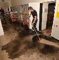 Mit vereinten Kräften gingen Wehrleute, Jugendliche und Ortsbürgermeister vor. Nachdem die Jugendlichen bereits im Treff das Wasser mit Wischmopps und Eimern aufgenommen hatten, waren sie eine Etage hoch gekommen und im Kindergarten mit aktiv. Hier hatten auch Möbel, Spielsachen und Bekleidung Wasser aus dem Heizungssystem abbekommen. „Es hätte noch schlimmer kommen können“, meinte der Ortsbürgermeister. Zum Glück hatten die Jugendlichen den Wasserschaden bemerkt und alles richtig gemacht. Durch die Lochplatten in der Decke war das Wasser in den Treff getropft. „Es hat getropft wie in einer Tropfsteinhöhle“, sagte Wäschenbach. Wasserflecken an der Wand im Schulungsraum des Löschzugs zeugten davon, dass auch hier das Wasser sich seinen Weg durch die Decke gesucht hatte.