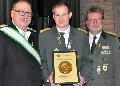 Hieran schloss sich dann die Ehrung der Mitglieder für 25, 40 und 50 Jahre Mitgliedschaft an, ebenso eine Talkrunde, geführt von Moderator Christoph Düber mit Gründungsmitgliedern, unter anderen mit dem ersten Schützenkönig Paul-Josef Bader. Hier kam natürlich manche Anekdoten zur Sprache, die längst vergessen schien. Die Gründungsmitglieder sind stolz auf die Entwicklung, die ihr „Kind“ genommen hat. Die nächsten Redner waren die stellvertretenden Diözesanbundesmeister Tobias Kötting und Klaus Zinke sowie der Bezirksbundesmeister Jörg Gehrmann. Die Birken-Honigsessener Schützen wurden mit der Hochmeisterplakette des Bundes der Historischen Deutschen Schützenbruderschaftenausgezeichnet, die der sichtlich stolze Brudermeister Florian Jung entgegennehmen konnte.
