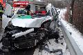 Die Leitstelle löste für zahlreiche Einsatzkräfte Alarm aus am frühen Montagnachmittag. Der 25-jährige Kraftfahrer war mit seinem BMW auf der Kreisstraße K 7 in Richtung Rosbach unterwegs gewesen. Nach Angaben der Polizei verlor er in einer leichten Rechtskurve die Kontrolle über seinen PKW und geriet auf die Gegenfahrbahn. Der Fahrer eines Kleinbusses konnte ihm noch ausweichen, kam aber von der Straße ab und blieb in einem Gebüsch, abseits der Straße, stehen. Ein weiterer PKW, dessen 40-jähriger Fahrer nicht mehr ausweichen konnte, prallte mit dem entgegenkommenden Fahrzeug frontal zusammen. Beide Fahrer wurden in den Wracks eingeklemmt und mussten durch Feuerwehrkräfte befreit werden.