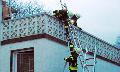 Da an dem Gebäude alle Türen verschlossen waren, gab es nur den Zugang über das Dach eines Anbaus. Hier musste mit tragbaren Leitern gearbeitet werden. Die Verwendung dieser Einsatzmittel sollte geübt werden, so der Einsatzleiter und stellvertretende Wehrführer Lars Bieler. „Wir verfügen zwar über eine Drehleiter, aber es gibt immer wieder Einsatzstellen, an denen dieses Fahrzeug nicht eingesetzt werden kann. Oft mangelt es in den engen Bebauungen der Orte an Platz, um die Drehleiter sinnvoll einsetzen zu können“, so Bieler weiter.