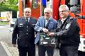 „Wie Sie alle wissen, endet meine Dienstzeit zum 31. August und ich möchte diese Gelegenheit wahrnehmen, mich als Landrat von Ihnen zu verabschieden. Als sogenannter Privatmann fühle ich mich auch weiterhin den Kameradinnen und Kameraden der Hilfsorganisationen eng verbunden. Für Ihr ehrenamtliches Engagement und Ihren Einsatz zum Schutze unserer Bürgerinnen und Bürger danke ich Ihnen von Herzen und wünsche Ihnen persönlich und im Kreise der Hilfsorganisationen alles Gute“, so Michael Lieber. Im Anschluss übergab er den Schlüssel und einen Akku-Schrauber. Der Schrauber, so Lieber, erleichtert das Bedienen der Abstützung am neuen Fahrzeug.