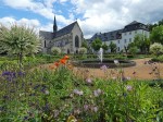 Dem Barockgarten, gegenüber der Buch- und Kunsthandlung gelegen, sollte man besondere Aufmerksamkeit widmen (Fotos 28 und 29). Nach alten Zeichnungen wurde die Gartenanlage von 2010 bis 2011 rekonstruiert. Wie aus dem Klosterführer zu entnehmen, spiegeln die Wegeführung sowie die zurückhaltende Bepflanzung und der zentrale Brunnen das Streben des Klosters nach Schlichtheit wider. Rosen- und Lilienbeete in der Nähe der Abteikirche weisen als Symbole auf die Gottesmutter Maria hin. Ein Wasserspiel in der Mitte der Gartenanlage erregt Aufmerksamkeit. Am Fuß der alten, teilweise restaurierten Natursteinmauern haben sich zahlreiche, zum Teil seltene Pflanzenarten angesiedelt. Die Gartenanlage ist gepflegt und wirkt wie ein Ort der Ruhe und Besinnung.