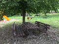 Auch mussten die Sitzgruppe und die Einzelsitzbänke an einem Standort fest montiert werden. Hiermit soll verhindert werden, dass von den Besuchern die Bänke nicht in den Schutzbereich der Spielgeräte gestellt werden und so eine Verletzung für die spielenden Kinder ausgeschlossen wird.