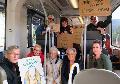 Auch die Kreis-Grünen (Kreisverband Altenkirchen von Bündnis 90/Die Grünen) hatten bei ihrer Mitgliederversammlung in Wissen in der vergangenen Woche zur Teilnahme an den Demonstrationen in der Region aufgerufen und die Teilnahme in Siegen oder Siegburg empfohlen, da man mit öffentlichen Verkehrsmitteln aus dem Kreisgebiet gut dorthin gelangt. So stiegen am Freitag schon in Betzdorf und Kirchen mehrere Unterstützer der Demonstration mit Ihren bunten Plakaten in den Zug nach Siegen ein, unter ihnen auch Anna Neuhof, eine der Vorsitzenden des Kreisverbandes von Bündnis90/Die Grünen. Und dann machte sich bereits ein kleiner Demonstrationszug vom Bahnhof Weidenau auf zum Bismarckplatz, wo man zum eigentlichen Treffpunkt und den vielen anderen Gleichgesinnten stieß.
