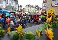 An die Menschen, die mit aufgespannten Regenschirmen vor der Bühne standen, wurden Tulpenzwiebeln verteilt. Den Segen erteilte am Ende Pastoralreferent Niklas Hirtz. Die Kollekte kommt dem Kinderschutzdienst Altenkirchen zu Gute. Dieser setze sich für Kinder ein, „die Hochform der Schöpfung“, sagte Vorsitzender Christian Ferdinand. Die Zuwendung soll für Präventionsarbeit verwendet werden, für Projekte, die Kinder stark machen. Die Band „Wortspiel“ bot noch einige Lieder dar, bis zur Eröffnung. Man habe das Wetter vom Samstag bestellt gehabt, meinte schmunzelnd Christoph Weller, Vorsitzender der Aktionsgemeinschaft, aber er zeigte sich zuversichtlich: „Es soll noch werden“ - und er sollte Recht behalten. Die Sonne zeigte sich zwar nicht, aber es blieb trocken. Seinen Dank entrichtete Weller an alle teilnehmenden Vereine und die ehrenamtlichen Helferinnen und Helfer vor und hinter den Kulissen.