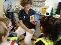 Als kleine Überraschung hatte die Tierärztin eine kleine Box mitgebracht, die den kranken Herzschlag eines Tieres akustisch darstellt. Unter Spannung und mit viel Begeisterung wurde das Hundegebiss genauer betrachtet, auch das Röntgenbild einer Katze wurde gezeigt. Auf diesem erforschten die Kinder neugierig die Knochen des Tieres.