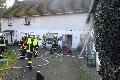 Durch die große Hitzeentwicklung brannte die Holzdecke zum Obergeschoss durch. Dieser Bereich wurde über Steckleitern geöffnet und ebenfalls abgelöscht. Im Verlaufe des Einsatzes breitete sich der Rauch in geringem Umfang auch in das Wohnhaus aus. Beide Bereiche wurden durch die Feuerwehr mit mobilen Lüftern rauchfrei gemacht. Im Anschluss kontrollierten mehrere Trupps unter Atemschutz und mit Wärmebildkameras ausgerüstet die Bereiche auf Glutnester.