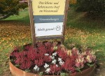 Etzbacher Ortseingangsschild begrüßt mit Blütenpracht