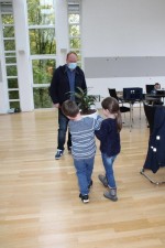 In Vorbereitung auf diesen Besuch hat jedes Kind eine Frage, die ihm besonders am Herzen lag, auf eine Karteikarte „geschrieben“. Mit Karten und einem selbstgestalteten Blumentopf im Gepäck startete die Gruppe ihre Exkursion ins Rathaus. Dort wurden die zukünftigen Erstklässler bereits von Herrn Hundhausen erwartet, der anschließend jede einzelne Frage geduldig beantwortete.