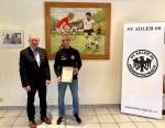 Niederfischbach. Da nun zum zweiten Mal coronabedingt die Jahreshauptversammlung des SV Adler verschoben werden musste, hatte Klaus-Jürgen Griese fünf Personen für eine besondere Ehrung ausgewählt. Im Namen des Deutschen Fußball Bundes (DFB), verbunden mit den FVB Rheinland, wurden am Samstag, 31. Oktober, im Adlerhorst Niederfischbach die Herren Bernd Schmidt und Karsten Zöller mit dem „Ehrenbrief“ des Fußballverband Rheinland ausgezeichnet.