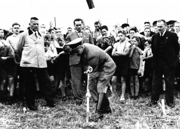 – Den 1. Spatenstich für die Siedlung „Moselland“ (1938, Alserberg) durch NS– Ortsgruppenleiter Albert Geiler