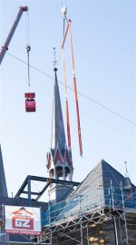Kirchen. In 80 Metern Höhe wurde heute das Gerüst um den Vierungsturm der Michaelskirche demontiert. Für die damit verbundenen Arbeiten wurden die anliegenden Straßen ab 8 Uhr teilweise gesperrt, so dass sie nur einspurig befahrbar waren. Die Lindenstraße (Verwaltung, IGS) war zeitweise komplett dicht.