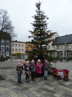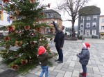 Ziel des Ausflugs, der von der Kindertagesstätte in Honneroth, durch den Parc de Tarbes, am Rathaus vorbei und schließlich in die Fußgängerzone Altenkirchens führte, war der Marktplatz, wo ein großer Weihnachtsbaum wartete. Der war zwar schon beleuchtet und mit einigen Schleifen geschmückt, aber es gab noch einige Äste, die Platz boten, um durch den Baumschmuck der Kinder verziert zu werden.